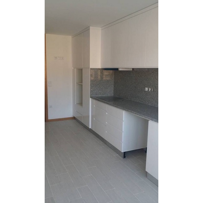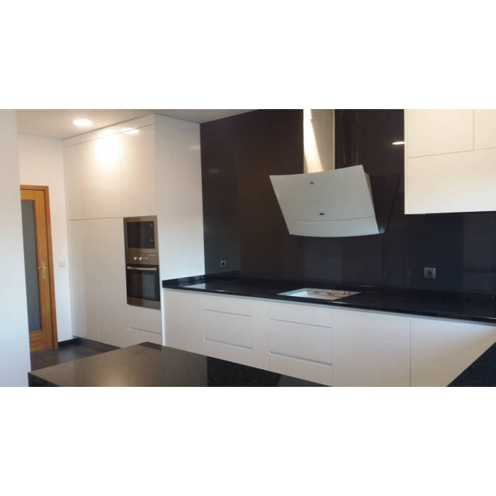 Cozinha Lacada Branca Material Móveis: Frentes Lacadas 70% brilho cor Branca Pedra balcão + Paredes: Granito Pedras Salgadas Ver detalhes