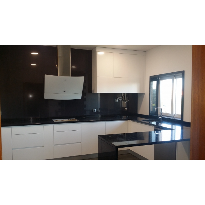 Cozinha Lacada Branca com tampo Preto Cozinha Lacada Branca com tampo Granito Negro Angola Ver detalhes