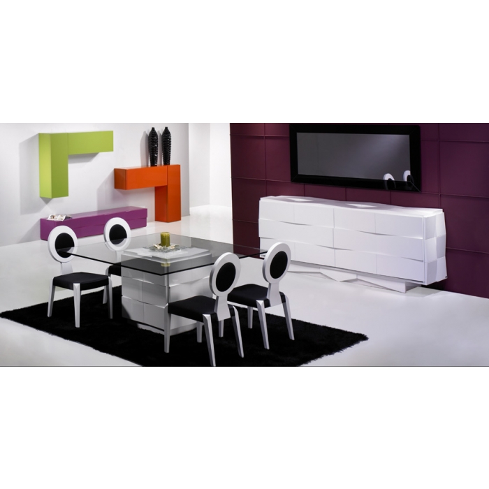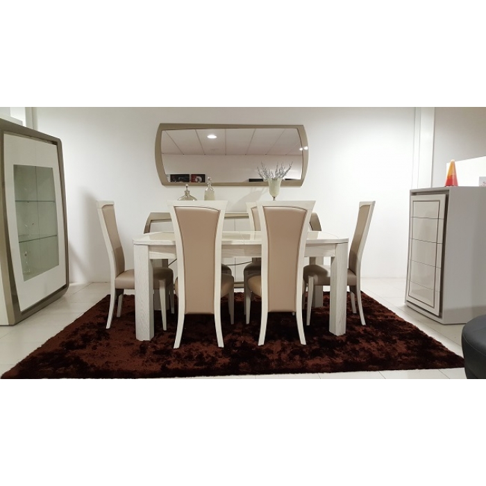Sala de Jantar MR Alto Brilho Branco Aparador em Lacado Alto Brilho Branco com 200 x 90 x 50. Moldura em Lacado Alto Brilho Branco com 170x80. Mesa de jantar em Lacado Alto Brilho Branco com 179 x 75 x 100. Cadeira R2 em Veludo virodo 272 com pés Lacados com 56 x 44 x 45/100. Ver detalhes