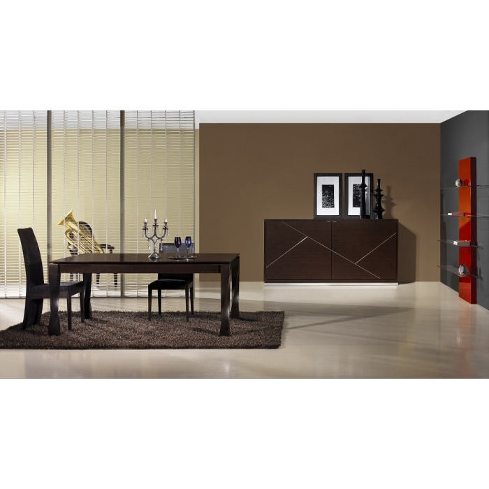 Sala de Jantar Pau Ferro em Alto Brilho Aparador em Pau Ferro Alto Brilho + Lacado Alto Brilho com pés em inox com 200 x 90 x 55. Mesa Jantar Extensível em Pau Ferro Alto Brilho + pés em inox com 180 x 100 + 50 +50. Cadeira Inox em Tecido Tippet 40514. Cadeirão Inox em Tecido Ravel 40514. Ver detalhes