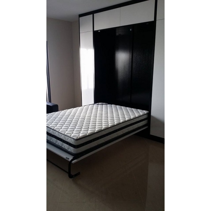 Roupeiro com estrutura elevatória Roupeiro em Lacado Branco + Carvalho Preto com estrutura elevatória para cama. Ver detalhes