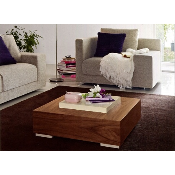 Mesa de Centro 01 SARMSC 36 Mesa de Centro com 90X90X37 em Nogueira + Lacado Branco Mate. Ver detalhes