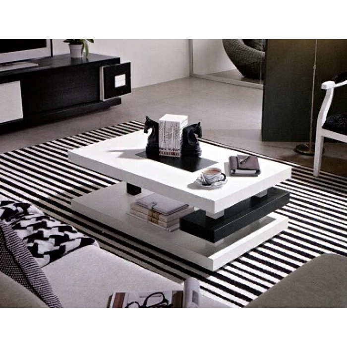Mesa de Centro 01 SARMSC 34 Mesa de Centro Elevatória com 100X45X60 em Lacado Branco Mate + Carvalho Preto. Ver detalhes