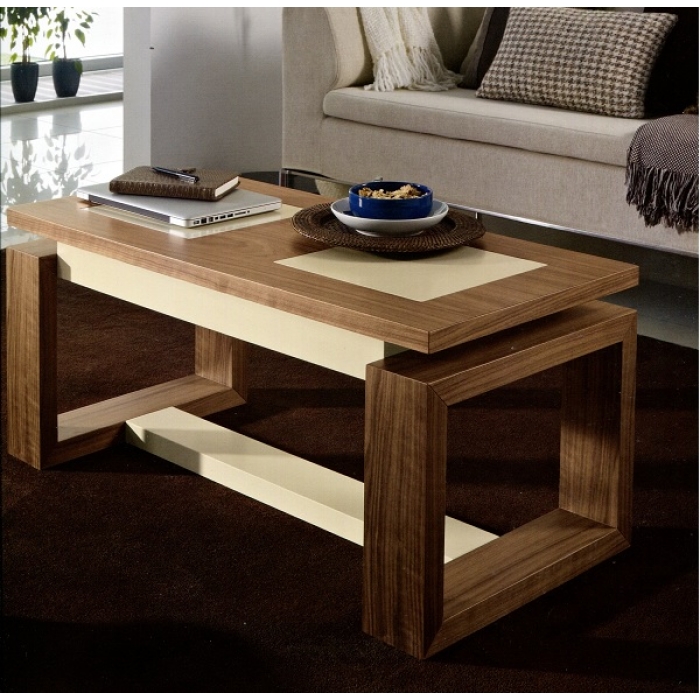 Mesa de Centro 01 SARMSC 31 Mesa de Centro Elevatória com 100X45X50 em Lacado Bege Mate + Nogueira. Ver detalhes