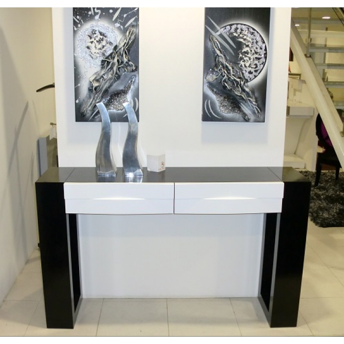 Consola Coimbra Consola em Carvalho Preto + Lacado Branco 70% Brilho com 140cm x 85cm x 37cm. Ver detalhes