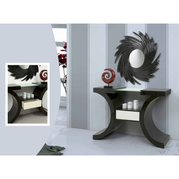 Consola 01 SARCON 18 Consola 01 SARCON 18 com 100X90X36 em Nogueira + Lacado Preto Mate - Moldura 01 SARMOL 14 com 100X80X8 em Lacado Preto Mate. Ver detalhes
