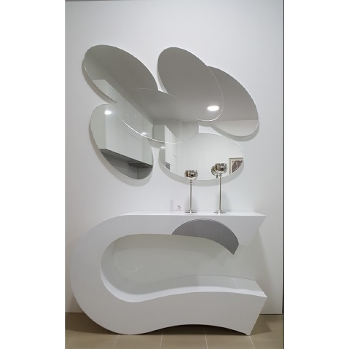 Consola S Consola em Lacado Branco Alto Brilho com uma gaveta. Medidas totais: 140cm x 83,cm x 35cm. Conjunto de espelhos ovais sem moldura à volta. Ver detalhes